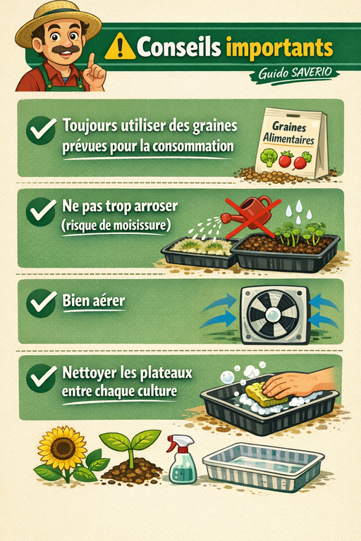 - Petites graines (roquette, brocoli) : pas nécessaire