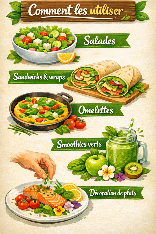 Ce sont de jeunes pousses récoltées 7 à 14 jours après la germination, très riches en nutriments et en goût (plus concentré que la plante adulte).